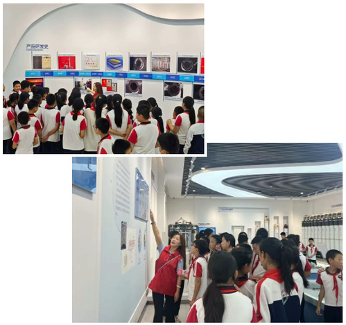 在科普讲堂与互动环节,天津科普大使高亮带来了精彩内容,通过生动讲解和有趣互动,激发他们对科学研究的兴趣。之后,津膜科技的技术人员带领师生参观了展厅,让大家近距离感受科技魅力,在实践中拓宽科学视野,培养动手、观察和思维能力。活动最后,全体人员在津膜科技工作人员组织下合影留念,活动圆满落幕。