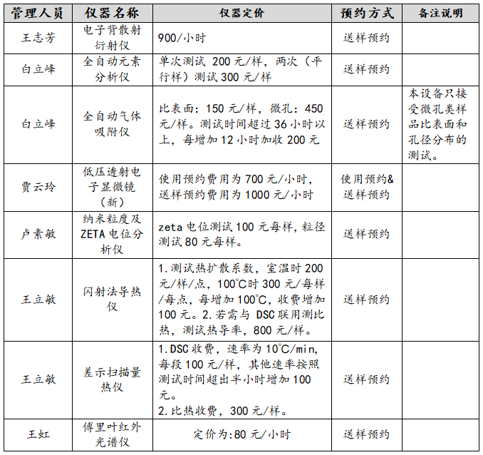 分析测试中心近期新购置的部分大型分析测试仪器均已经安装调试完毕,目前已经进入试运行阶段,具体预约方式及仪器定价等信息请参照下方表格。