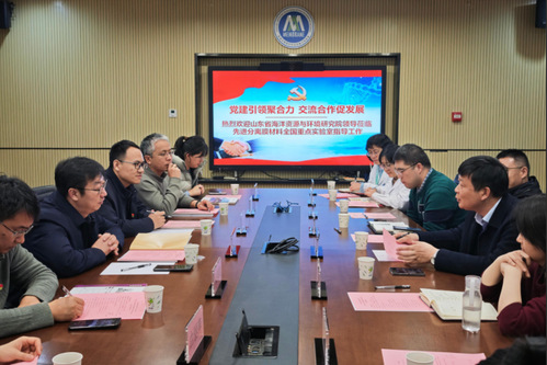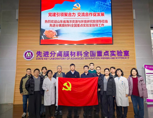 为强化党建引领作用,深化科研协同合作,搭建常态化交流平台,1月15日,山东省海洋资源与环境研究院(以下简称“研究院”)党委书记马元庆带队,与先进分离膜材料全国重点实验室(以下简称“膜全重实验室”)党支部开展主题交流活动。双方围绕“文化浸润—科研探路—党建赋能—合作共赢”主线,通过实地观摩、深入研讨,凝聚起党建与科研深度融合的发展共识。